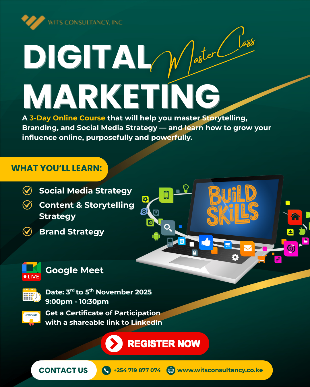 Practical, relevant, and industry-ready. Our courses prepare you to lead in the digital age including Digital Marketing, Brand Positioning, Content Strategy, Social Media Strategy & Management, Website Design, Graphics Design, Storytelling and much more.